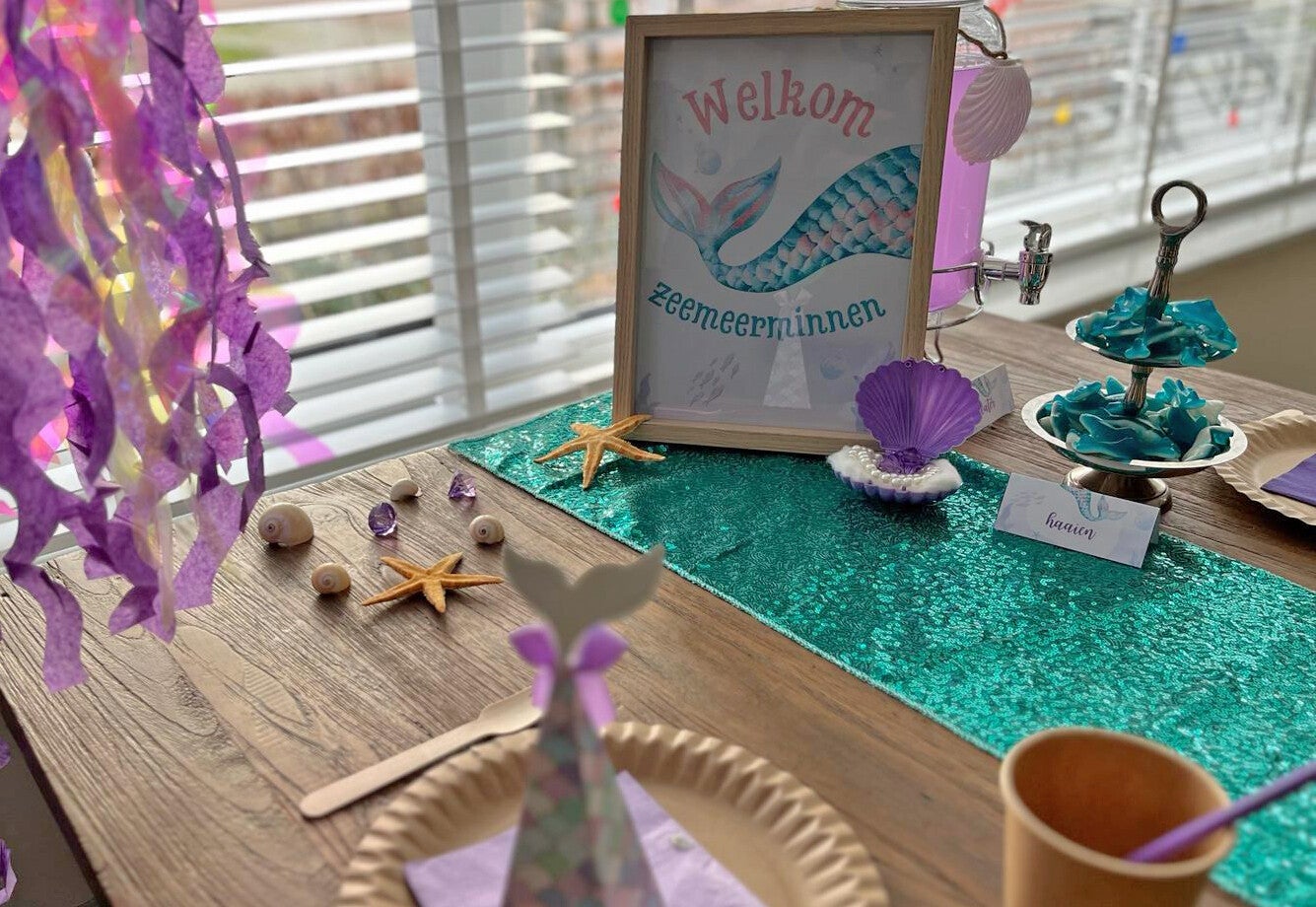 Afgelopen woensdag het zeemeerminnenfeestje gevierd voor de 7e verjaardag van mijn dochter. Superhandig dat alles in de feestbox geleverd wordt, want in de winkel kon ik vrijwel niets vinden met een zeemeerminnen thema.
